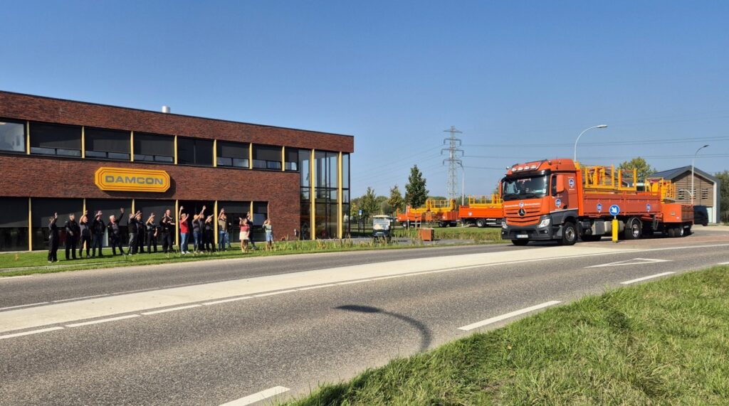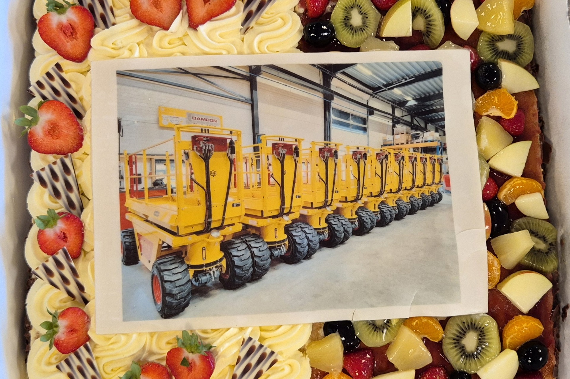 Last week saw the festive delivery of no fewer than ten brand-new pruning platforms. The delivery was anything but dull: the new platforms left our building on a red carpet and flanked by smoke cannons. A festive occasion that we celebrated together, with a cake, of course.