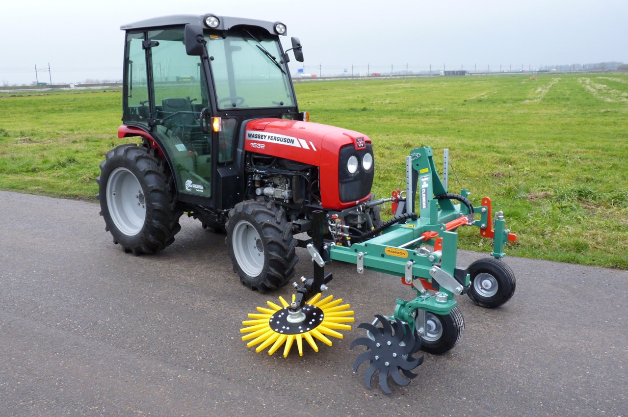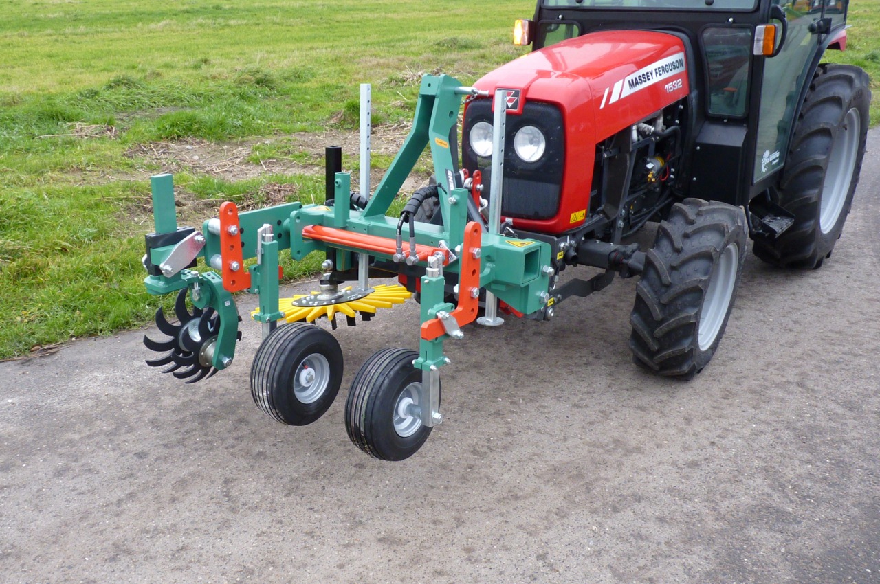 With the Clemens the weed can be removed on the row close to the trees. The Radius All-around weeder is available in two versions. The radius All-around weeder is a hydraulically controlled version. The All-around weeders can be supplied with various tools and accessories.