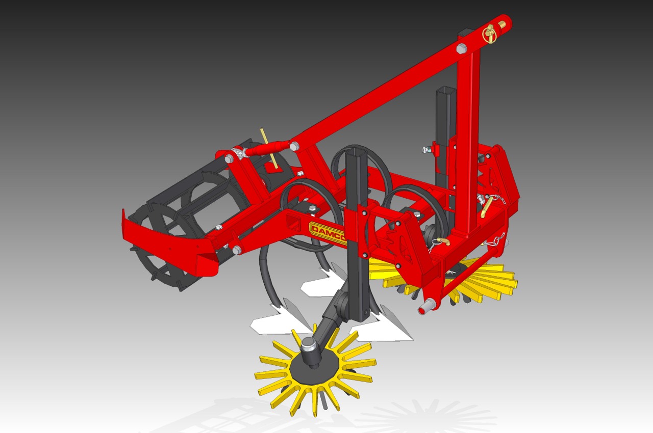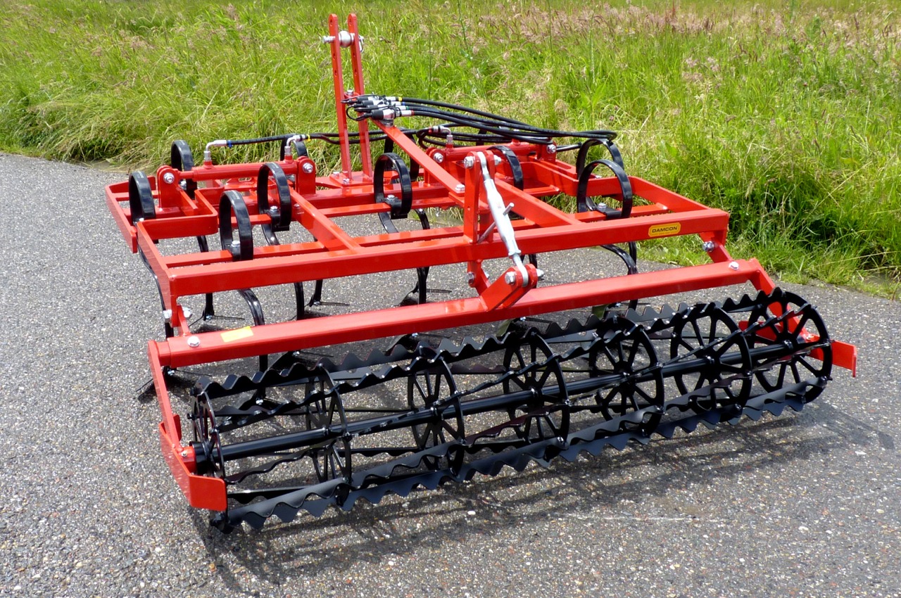 The Damcon cultivators are equipped with goosefoot hoes mounted on vibrating tines and equipped with a crumbling roller. Can also be expanded with extension pieces, torsion weeders or finger weeders.