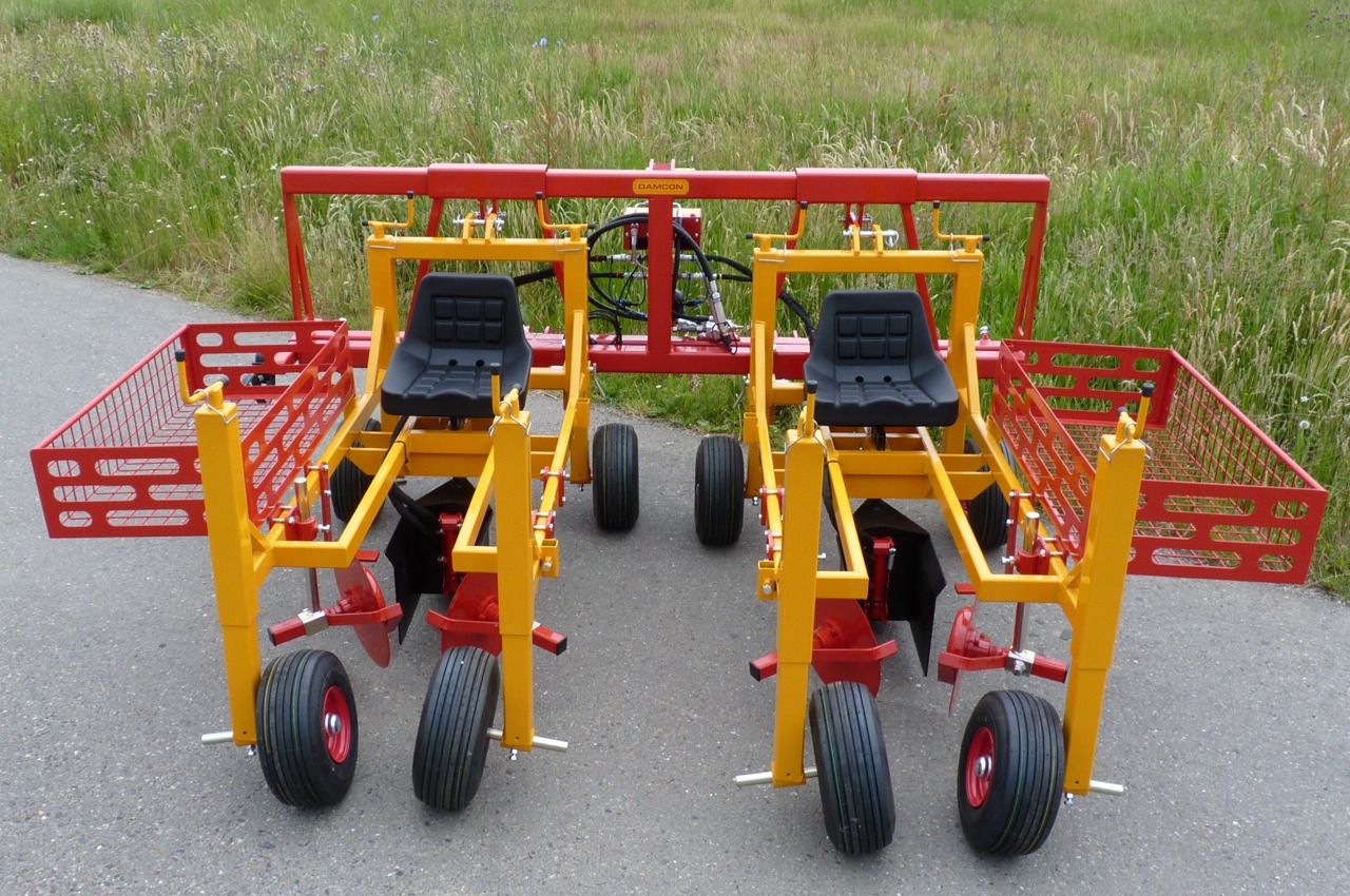 The tree planting machine PL-10, the smallest tree planting machine in the Damcon range, is extremely suitable for planting rootstocks, whips and conifers, among other things.
