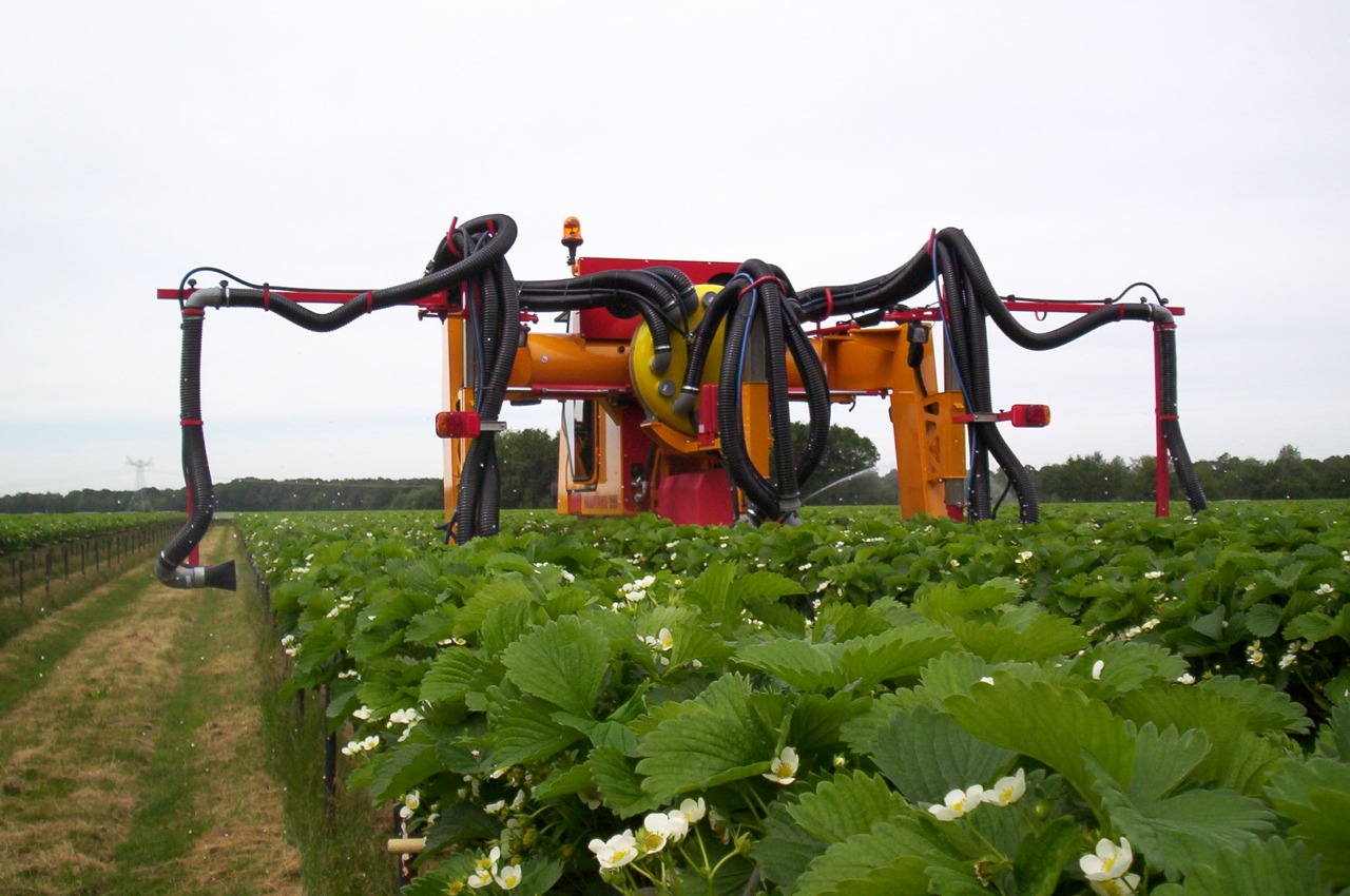 This Portal tractor in special version is suitable for spraying activities in strawberry cultivation on racks. The standard width of the middle part is 65 cm. Due to a special construction, the width at the height of the crop is 40 cm.