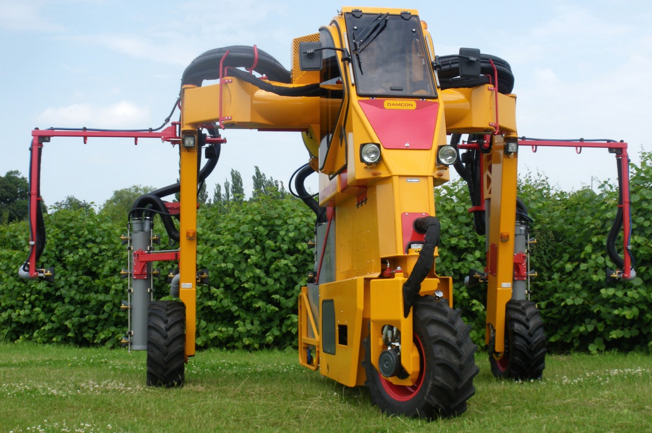 The sprayer is equipped with a 600 liter tank and a fan for air-assisted spraying. The cabin can be equipped with air conditioning and an overpressure system.