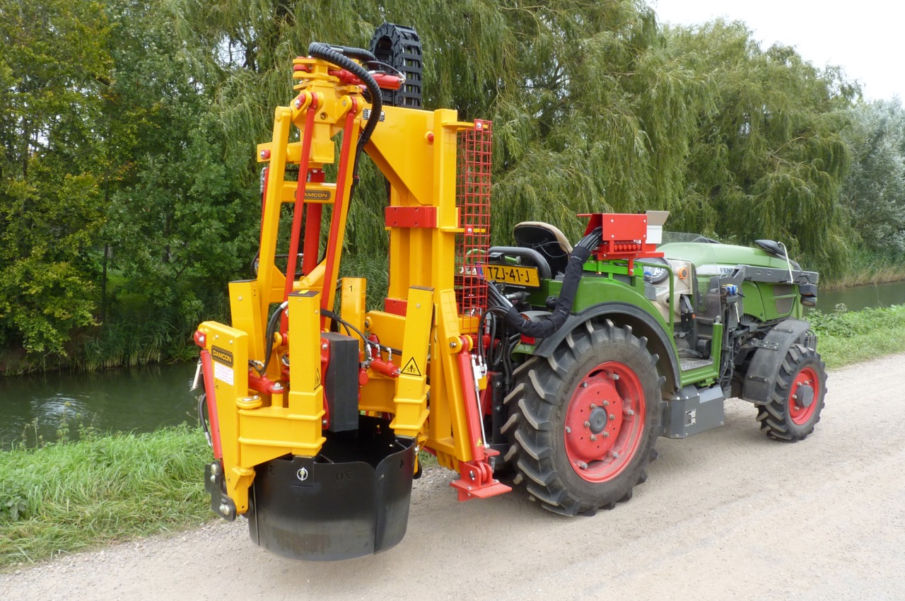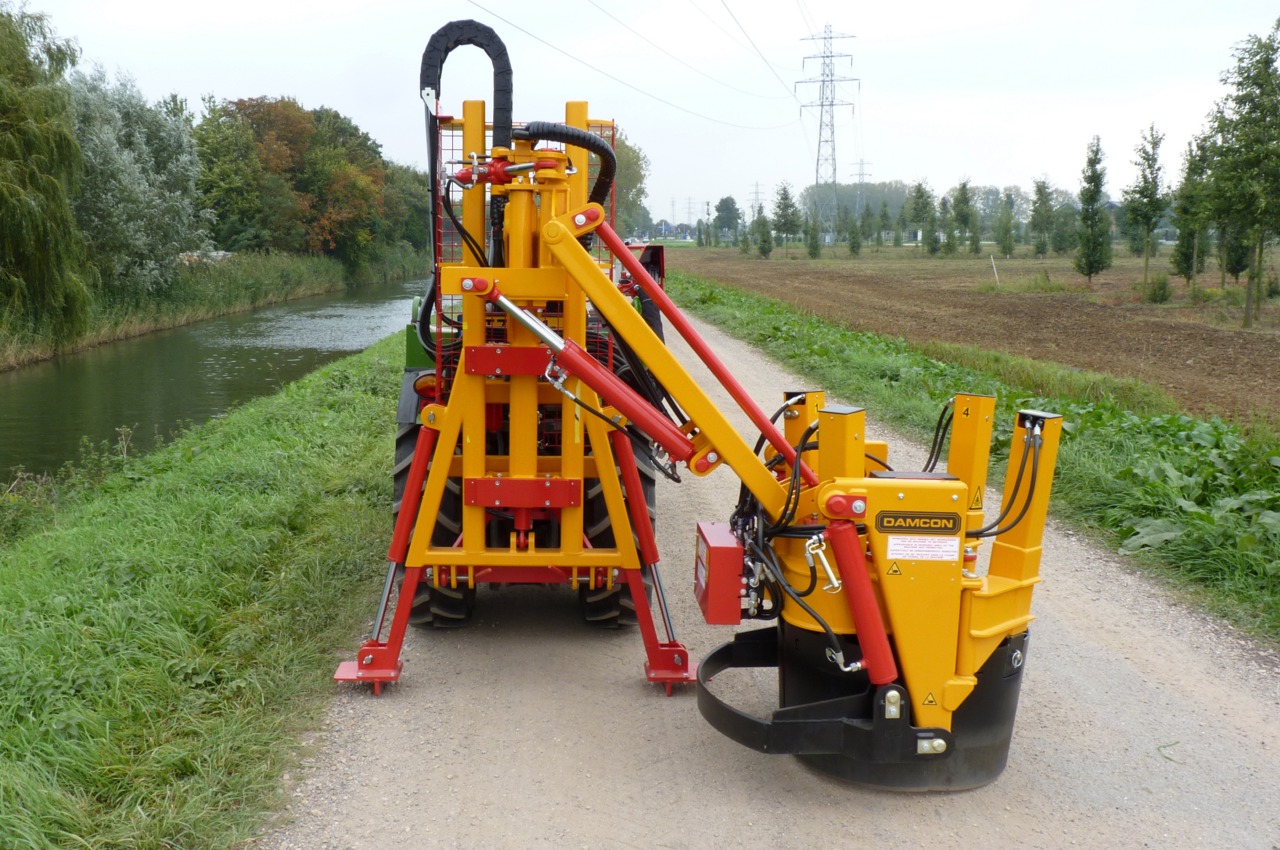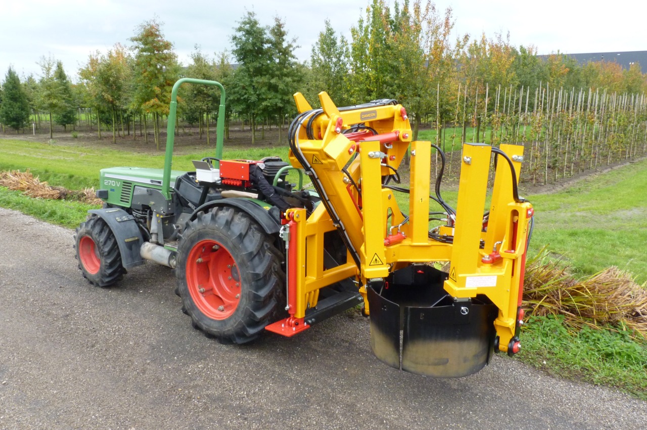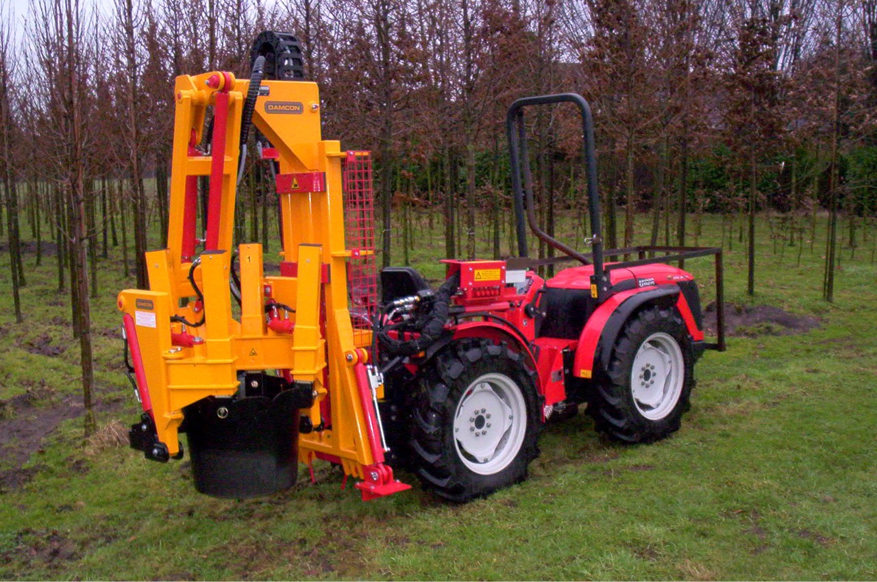 peration: The spades go around the tree and the clamp clamps itself around the trunk. The spades go down and the tree with rootball is pulled out of the soil. This principle only works with shallow roots. The spades are adjustable.
