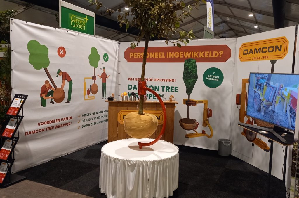 During the last GrootGroenPlus we successfully presented the Damcon Tree Wrapper®. We particularly showed the result; a perfectly wrapped rootball.