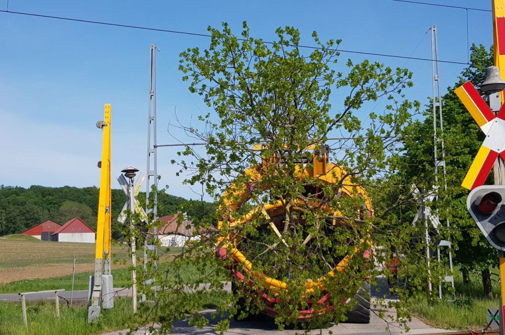“Hej Leen, can you help us with the following problem? We have a urgent job for the Swedish railways, we need to transplant a large number of trees quickly. These have to pass under the electricity wires, but with a tree transplanter and tree we are too high. We need an extra frame so that the tree can lie more horizontally.”